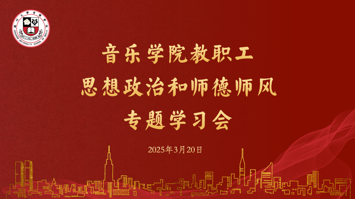 教师是立教之本、兴教之源。苏州大学音乐学院始终坚持师德建设与专业发展“双轮驱动”,通过组织专题学习、科研帮扶等活动助力学院教师队伍全面发展,为高质量人才培养与学科建设提供坚实保障。