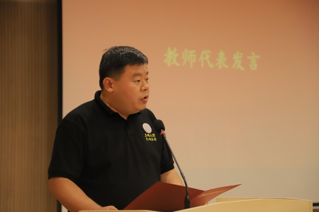 刘晶晶老师代表全体教师和同学们回忆了大学四年的点点滴滴,他勉励毕业生们要牢记心中的热爱与坚持,无论将来从事什么职业,都要去拥抱世界、服务社会,绽放出属于自己的独特光彩!