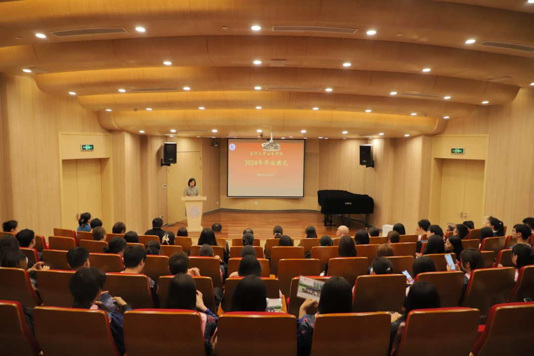 6月20日下午,苏州大学音乐学院2024年毕业典礼在学院二楼报告厅举行。音乐学院院长吴磊、党委书记胡晓玲、副院长顾明高、魏正启出席,学院教师代表、全体辅导员、行政办公室教师代表、2024届本科毕业生和研究生毕业生以及家长代表参加了典礼。典礼由党委副书记、副院长杨燕主持。