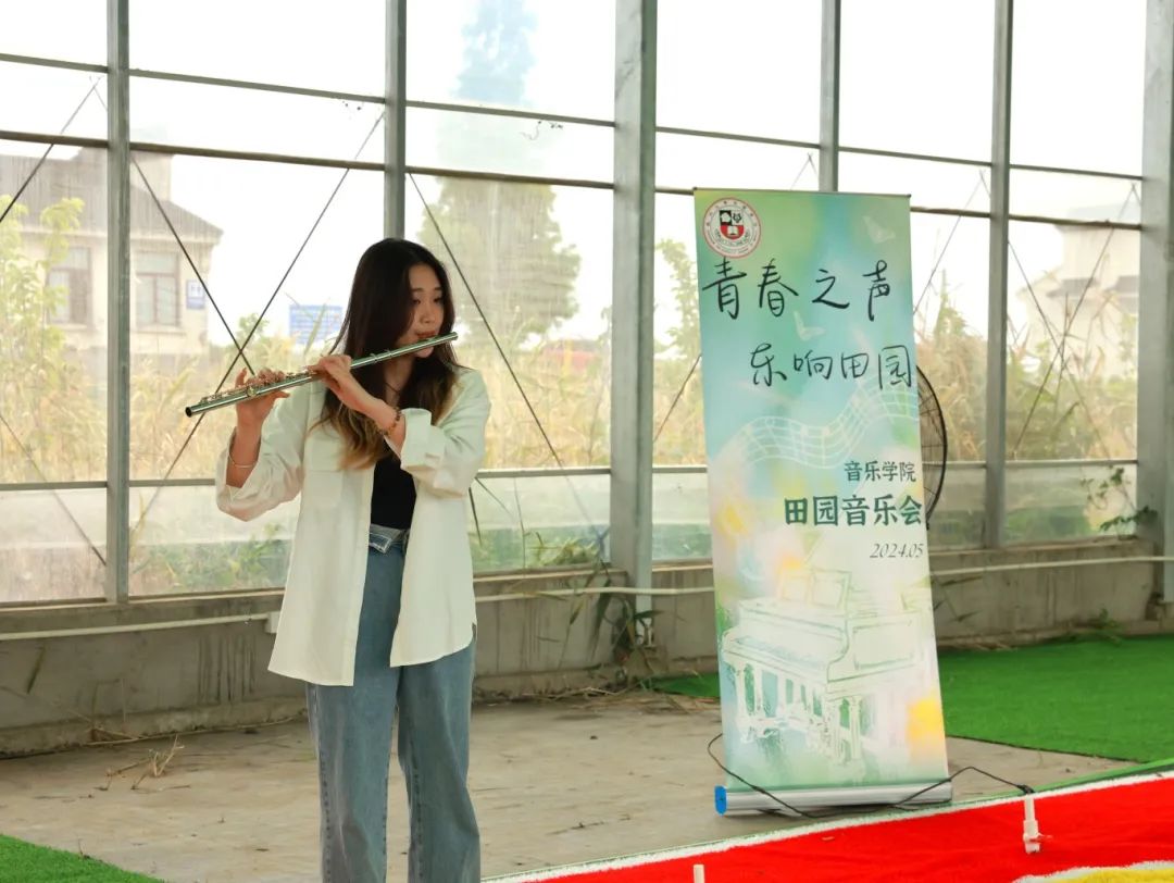 情不自禁把歌唱。你听!田间里又传来了动听的乐声,学生们把殿堂的音乐搬至田园之上,聆听与大自然的合鸣。音乐表演熊禹臻同学一首长笛独奏《茉莉花》,芬芳满溢,田园气息扑面而来。随后,同学们戴着草帽在田间锄地时,情不自禁地唱起了《稻香》《劳动最光荣》,唱出了对劳动的赞美,唱响了对生活的热爱之情!