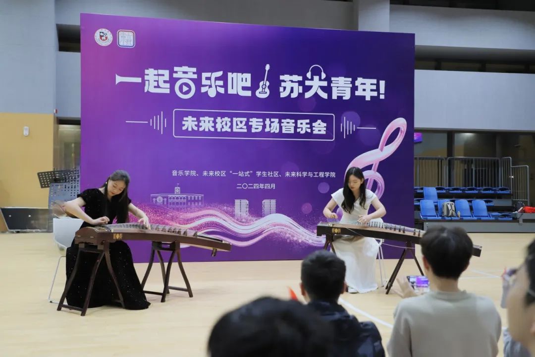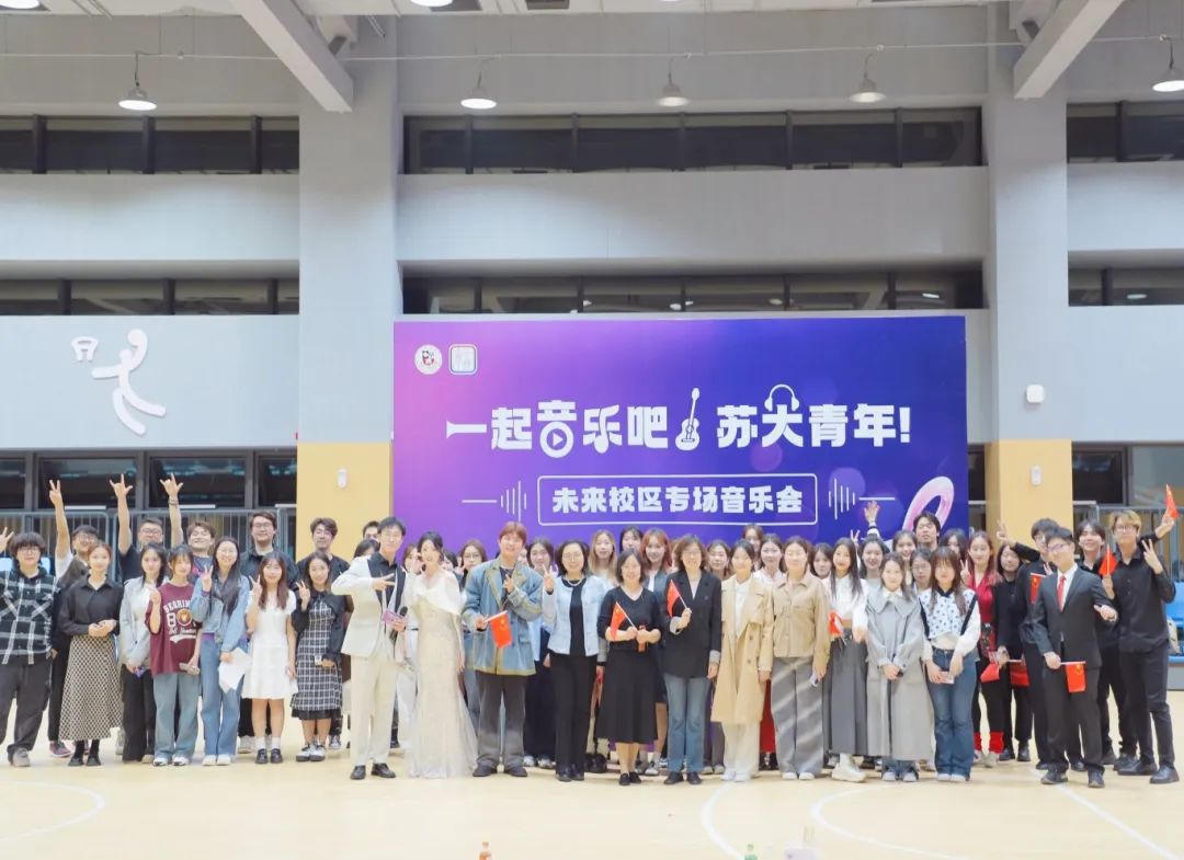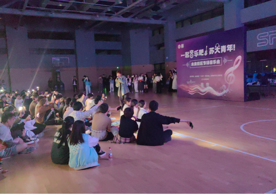 管弦声缭绕,笛音清幽幽。起舞见青春,共唱明日歌。4月26日晚,未来校区的篮球馆内响起动人的音乐声,无数苏大青年学子齐聚一堂,参与“一起音乐吧,苏大青年!”未来校区专场音乐会。在春和景明之际,苏州大学音乐学院将美妙动听的音符从独墅湖校区带到未来校区,他们以音乐为语言,穿越古今,传递情谊,让美与艺术在未来校区的月夜绽放。