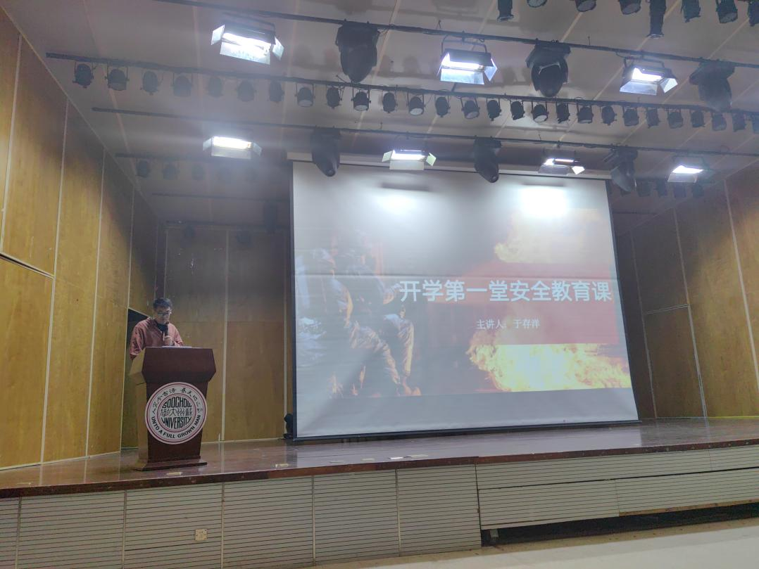 随后,学院团委书记于存洋讲授了以《安全我先行》为主题的安全第一课,以近期社会上发生的火灾案例为切入点,向大家详细介绍了常见的各类电器违规操作及可能存在的安全隐患,围绕校园安全、交通安全、食品安全、人身安全和网络安全等方面展开,向同学们讲解了易见多发的典型诈骗、盗窃案例以及防范策略,同学们要牢牢把安全握在手中,做到防患未然,营造安全、健康、文明的良好氛围。