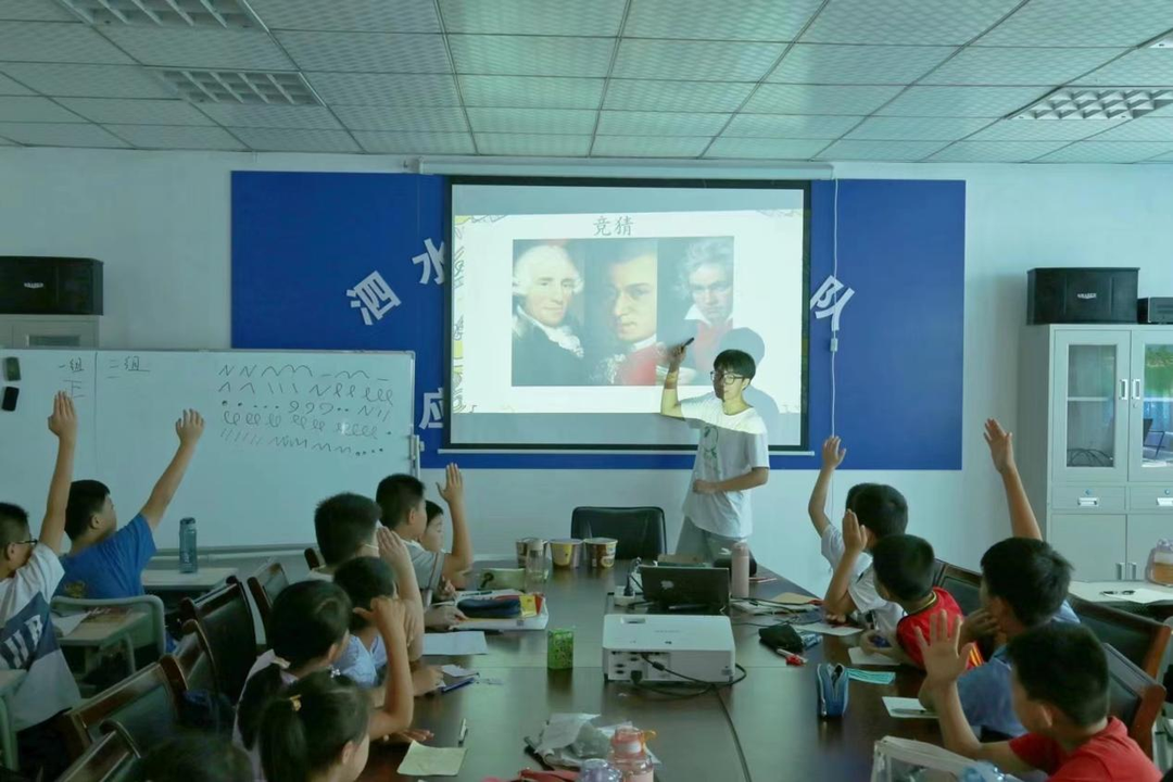 为响应乡村振兴与教育强国政策,7月16日至30日,2020级音乐表演专业的董大硕同学作为苏州大学青茶支教团的一员,携手泗水县微公益协会,开展“三下乡”暑期社会实践公益活动。在鸿润厂区开展为期14天的暑托班陪伴活动。此次实践活动重点在结合自身音乐专业的优势,围绕“学会唱一首歌、学会认识五线谱、学会一门小乐器”提高孩子们的音乐素养的美育理念,为孩子们开展了奥尔夫声式律动、走进西方交响乐、认识木管乐器单簧管、布依娃娃爱唱歌等课程。通过综合拓展课程全方位丰富了同学们学习的深度与广度,将知行合一落到实处。