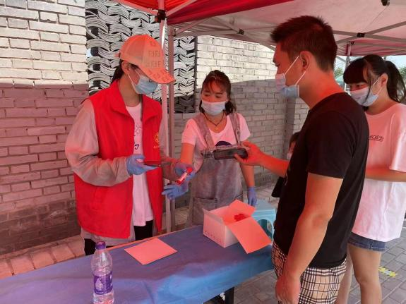 图为朱珪秀同学协助核酸采样