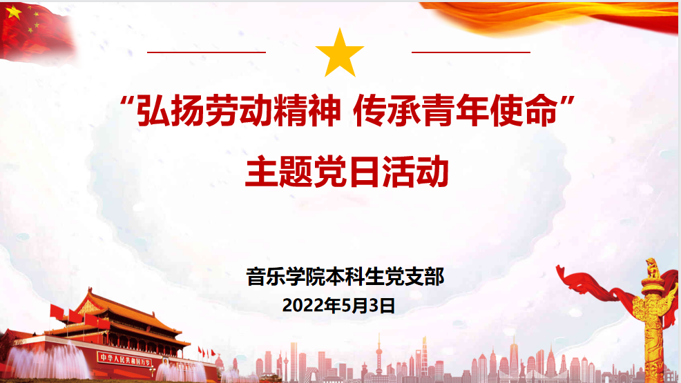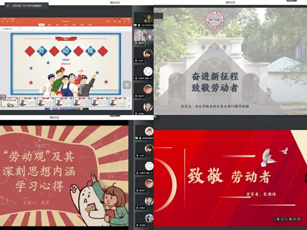 音乐学院本科生党支部开展“弘扬劳动精神,传承青年使命”主题党日活动,深刻领会习近平总书记的“劳动观”。党员同学们在云上“谈劳动,话心得”。