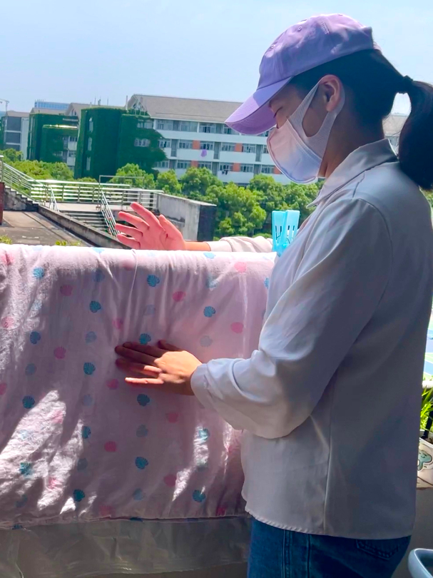 被子松松软软带着太阳留下的味道,也给宿舍增添了一些春天的气息。在学校的我们,期待与亲爱的你们再次相见。