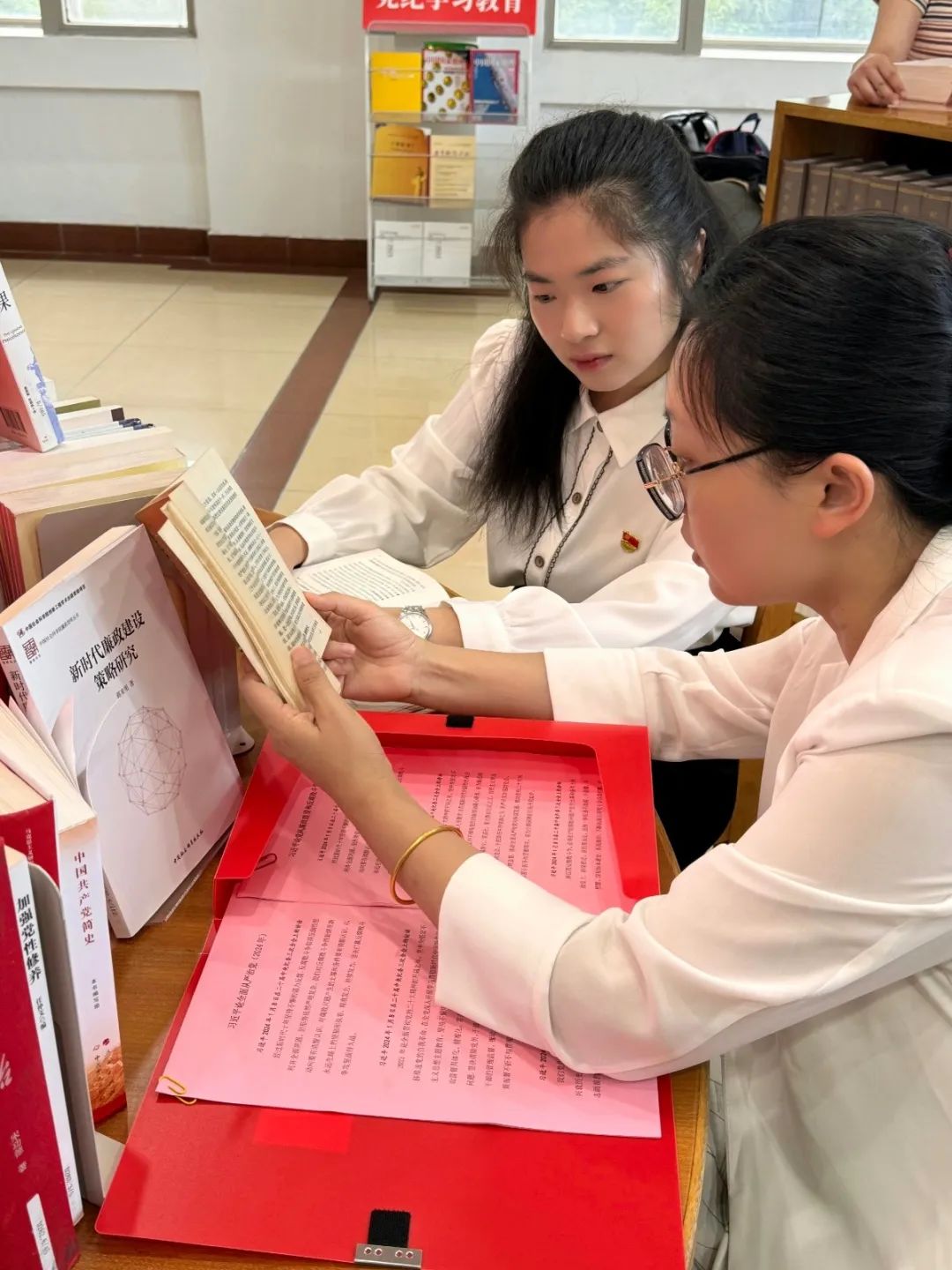 开展“永葆廉洁守初心,坚定信仰强根基”主题党日活动,组织毕业生党员参观天赐庄校区图书馆党纪学习教育专区,进行沉浸式党纪学习教育。一本本具有时代标志性的书籍,一段段生动珍贵的史料,让同学们深入了解了当前党风廉政建设和反腐败斗争的严峻形势,接受了一场深刻的党性洗礼和警示教育,教育毕业生党员必须要牢记底线红线、增强自律意识,时刻保持清醒的头脑,切实增强廉洁自律意识,做到心中有党、心中有民、心中有责、心中有戒。