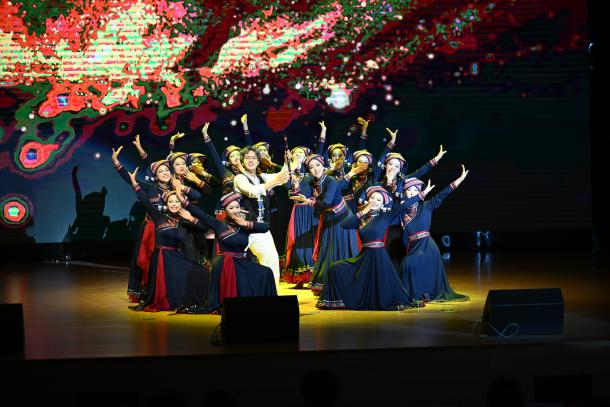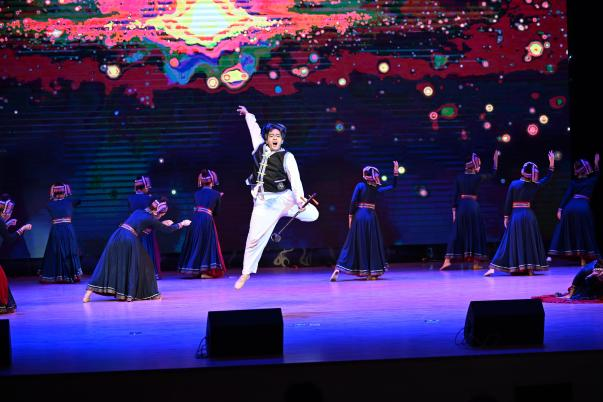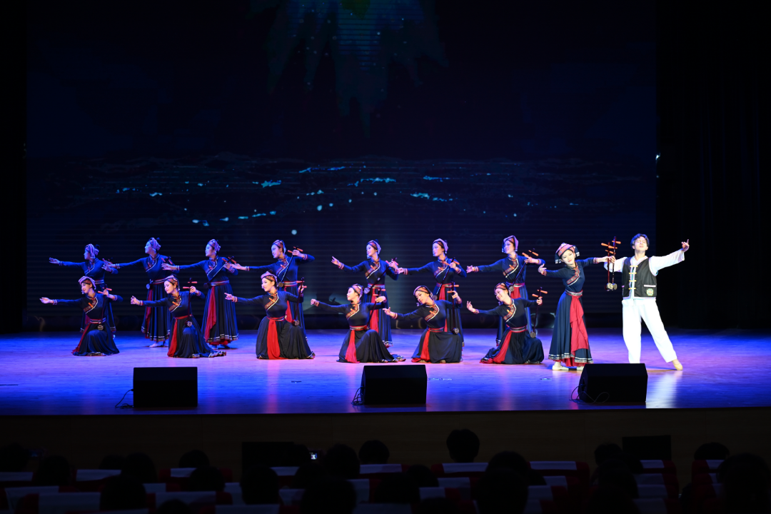 《逐音追琴》是以壮族非遗乐器天琴的传承为背景创作的舞蹈。音乐学子们在舞台上追寻着音乐律动,舞姿舒展大方,动作铿锵有力,将壮族人民热情奔放的性格特点表现得淋漓尽致。他们用舞蹈演绎青春的活力,诠释对音乐与生活的理解,展现新时代大学生的青春风采。最终《逐音追琴》以总分9.67的高分从28支队伍中脱颖而出荣获一等奖,并以总分排名第一的成绩再次捧得“传承杯”。