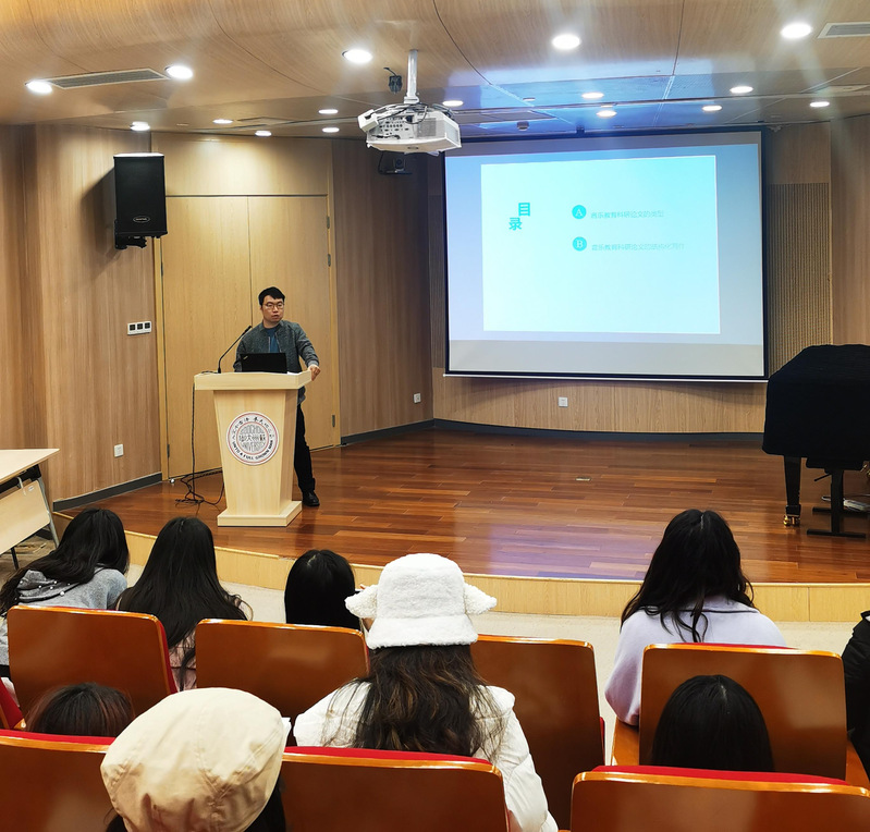 首先,冒小瑛老师讲解了近阶段毕业班的学习安排,她对本次讲座的目的及重要意义做了介绍,特别指出了音乐教育专业毕业论文的师范性特质以及论文选题方向,希望同学们确定导师并尽早开展论文写作进程。