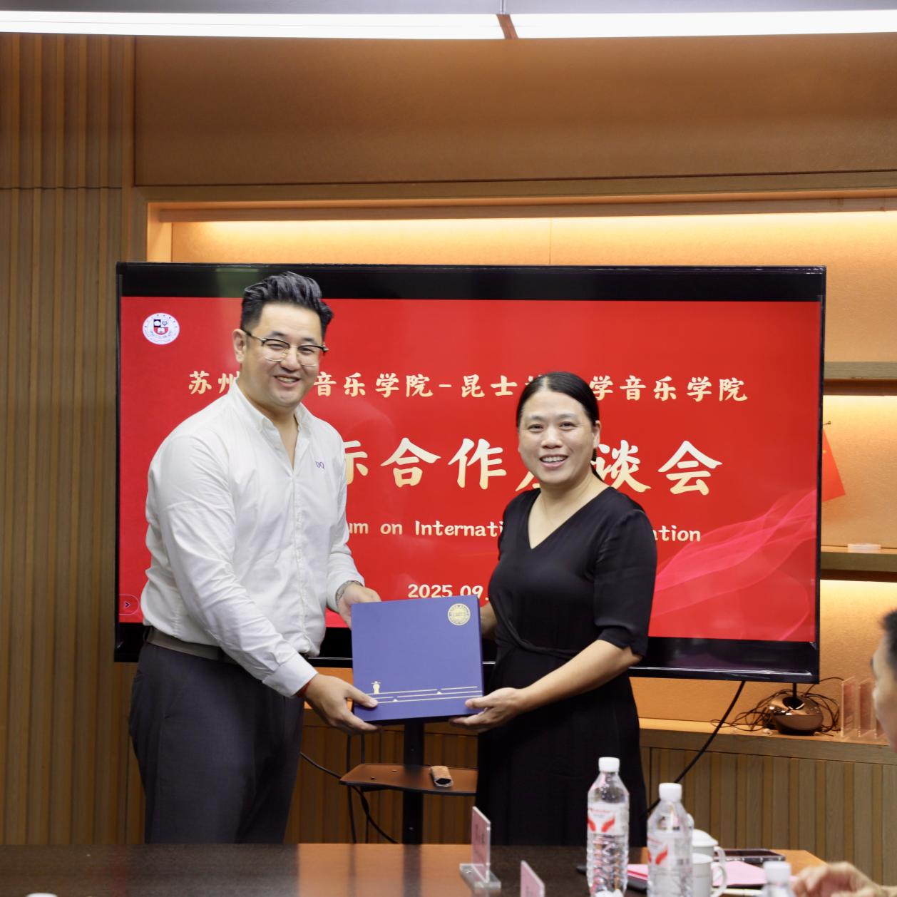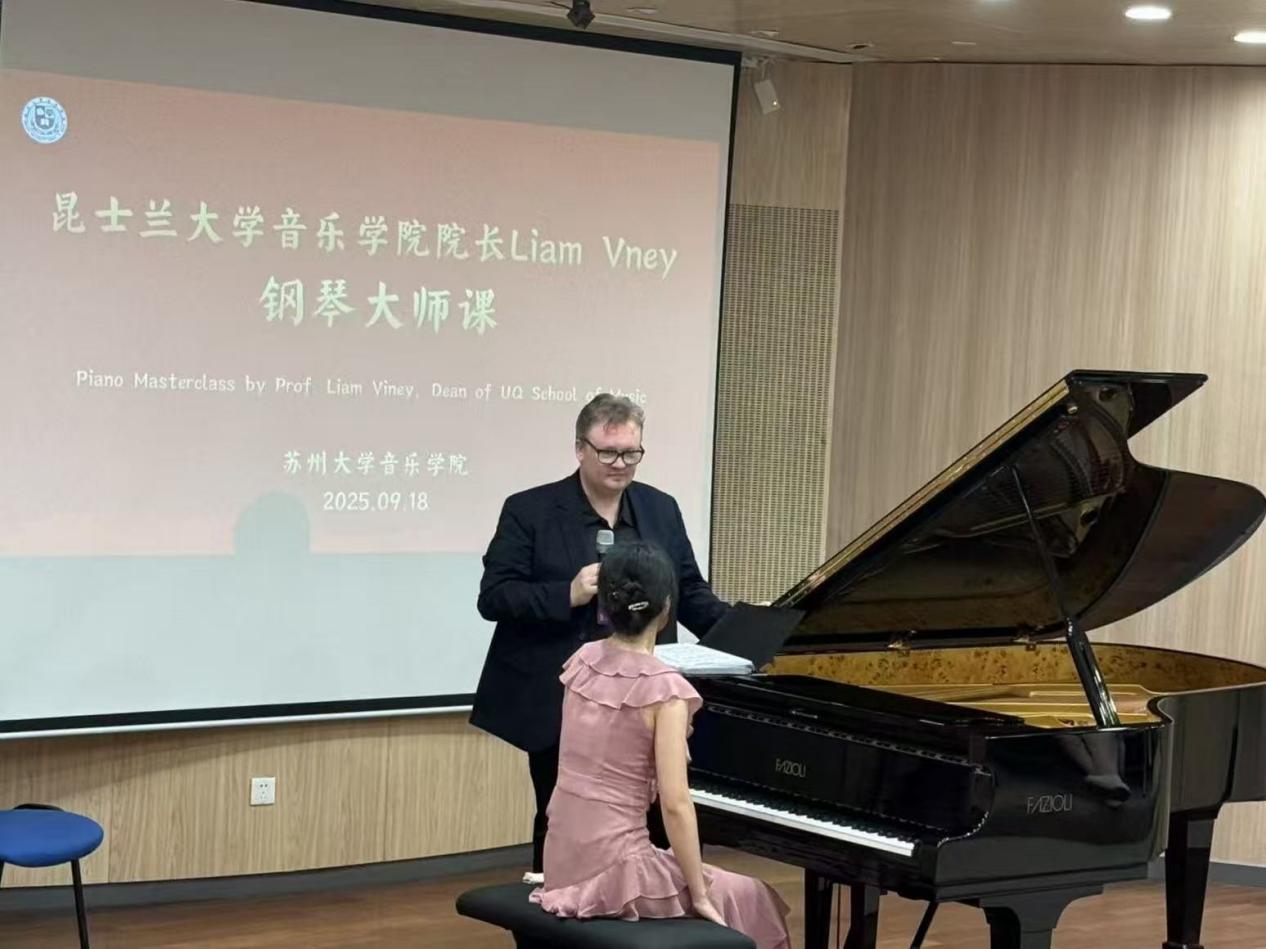 9月18日,苏州大学音乐学院-昆士兰大学音乐学院联合活动日拉开帷幕。上午10:30,在参加2025级苏州大学国际培训学院开学典礼后,昆士兰大学音乐学院院长Liam Viney莅临我院,开启他此次中国行的华东唯一一站。