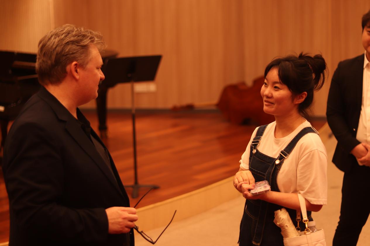 音乐会结束后,Liam院长还举办了一场高水平的大师课,为学院优秀学生分享了专业的音乐知识和演奏技巧,拓宽了我院学子的国际化视野。