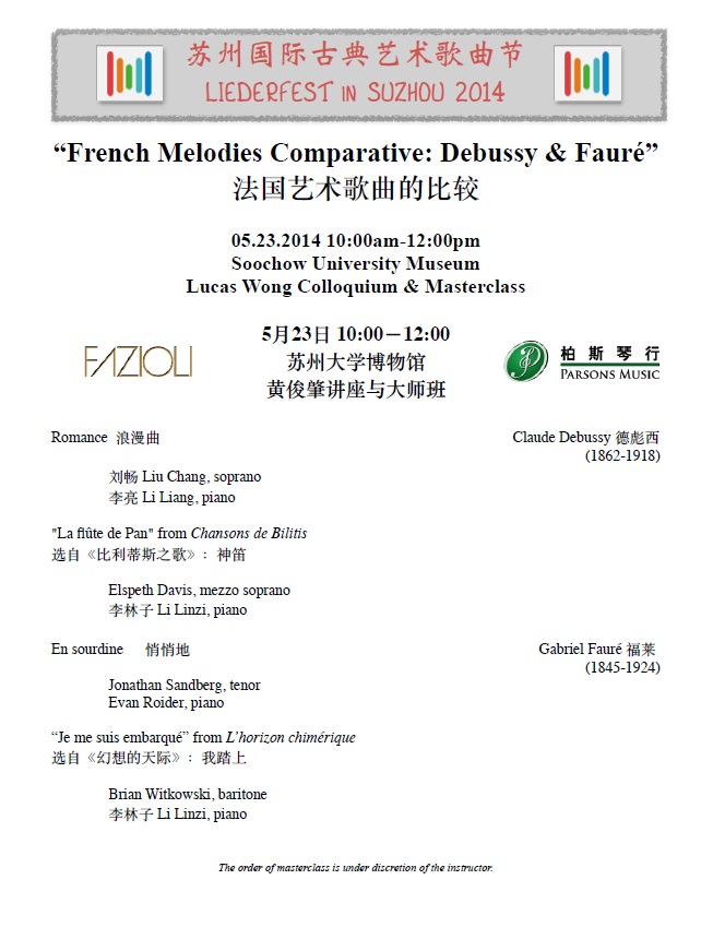 黄俊肇大师班 -- 福莱与德彪西的艺术歌曲之比较