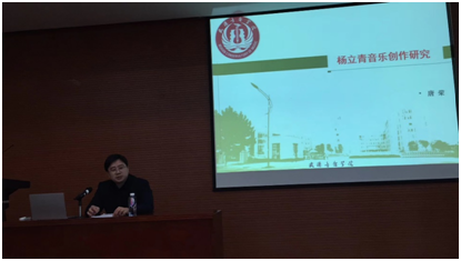 2017年12月8日,我院教师唐荣博士受武汉音乐学院邀请在滨江校区学术报告厅做了题为《杨立青音乐创作研究》的讲座,这也是武汉音乐学院作曲系教师论坛第65期学术讲座。讲座由著名作曲家、武汉音乐学院作曲系主任赵曦教授主持,作曲系师生现场聆听了讲座
