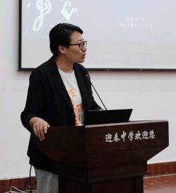迎春中学的俞蕾主任首先发表了热情洋溢的讲话,她为大家介绍了迎春中学艺术方面的办学特色,她欢迎苏大音乐学院的师生们常来迎春,希望两校间的合作可以更加紧密。
