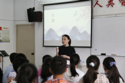 在公开课环节,毕业于苏州大学音乐学院的万文君老师给同学们带来了一节生动有趣的音乐欣赏课《巴蜀山歌》。这首管弦乐曲选自作曲家鲍元恺的交响组曲《炎黄风情》的第四章,万文君老师生动地讲解加上动人的歌声,将巴蜀的风光尽展眼前。整节课节奏紧凑、教学有序,初二的同学们课堂反应热烈,苏大同学们也听得十分入迷。